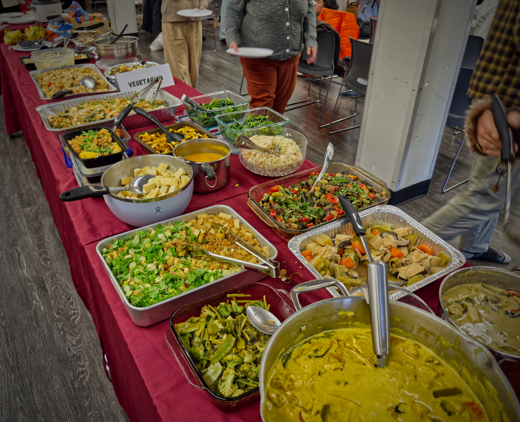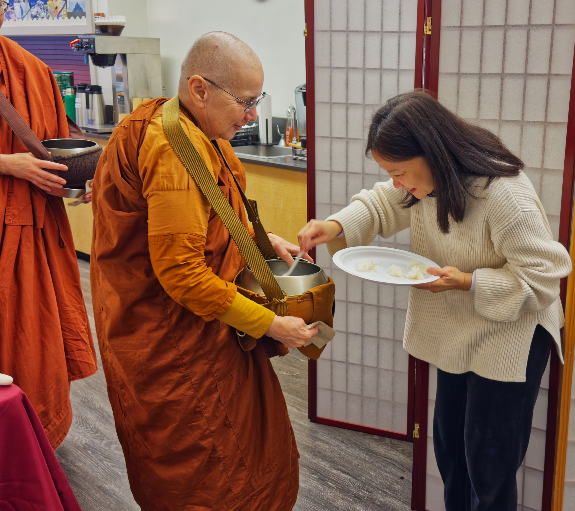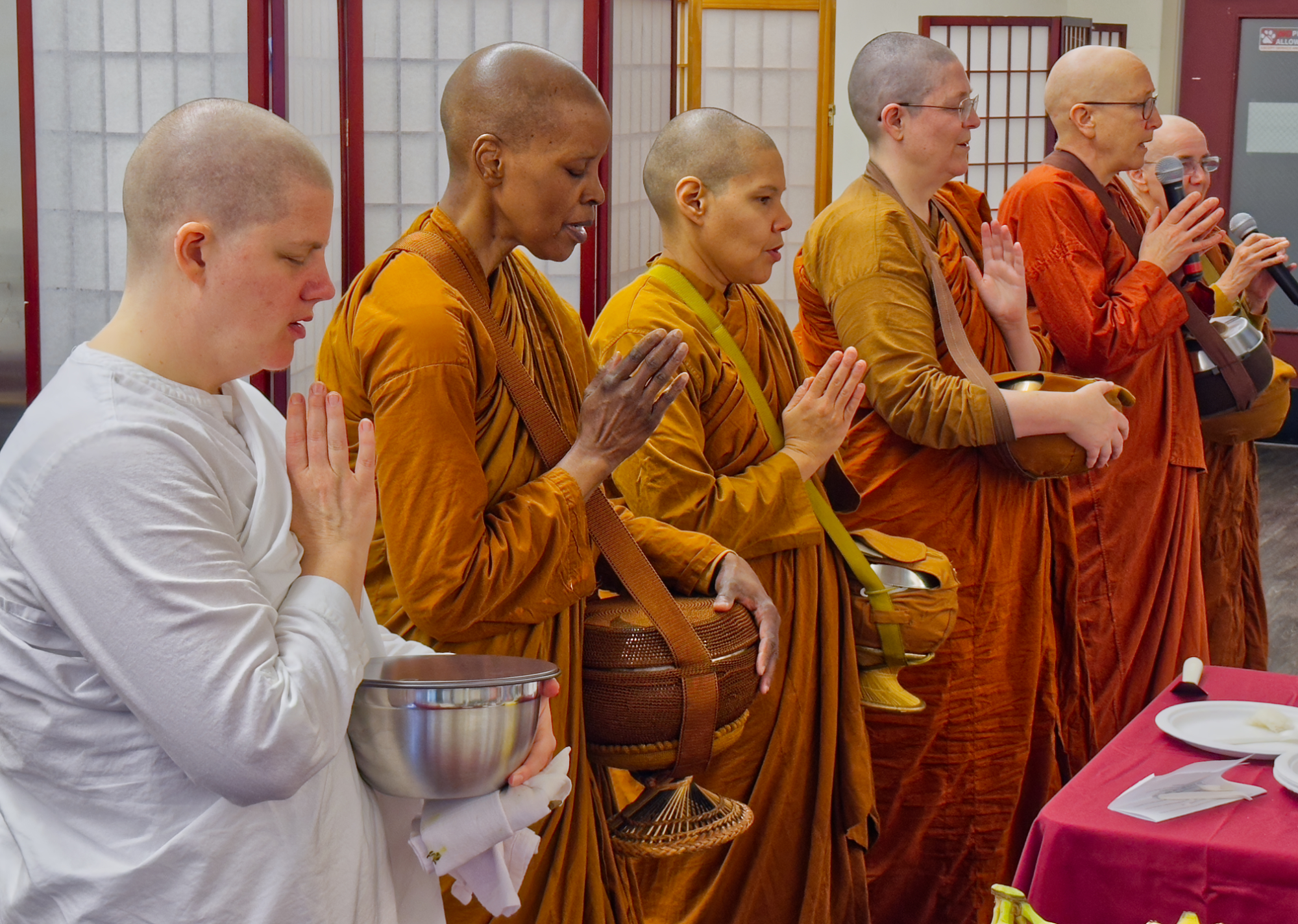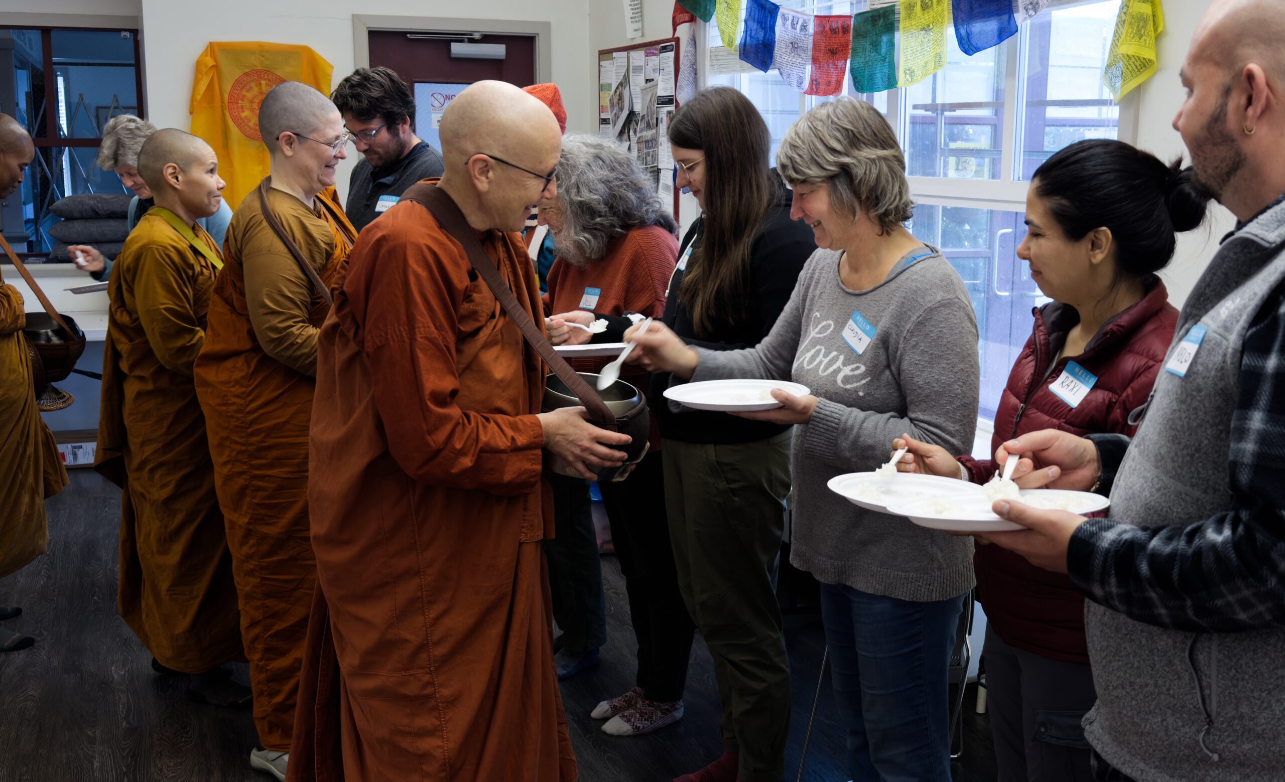 The event began with a symbolic almsround in which attendees offered one spoonful of rice to each bhikkhuni. The gesture created a precious moment of connection between the giver and the receiver and served as a reminder of the traditional way that Buddhist monastics have received almsfood. A bountiful potluck meal then took place along with socializing amongst attendees.