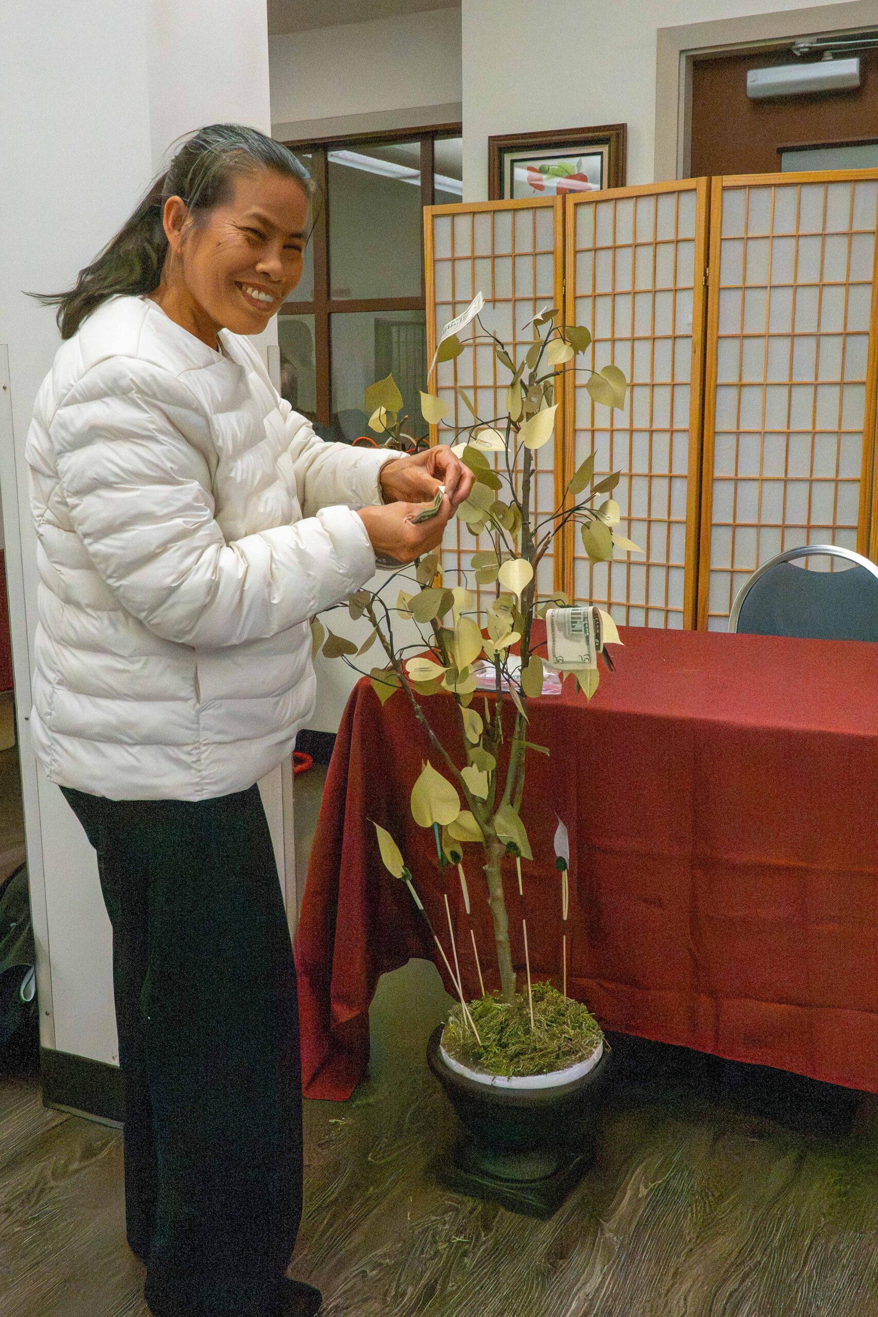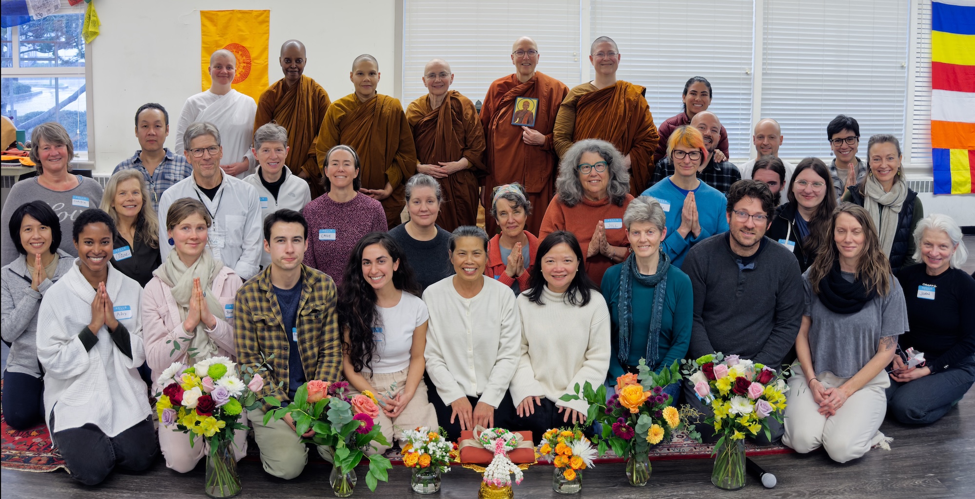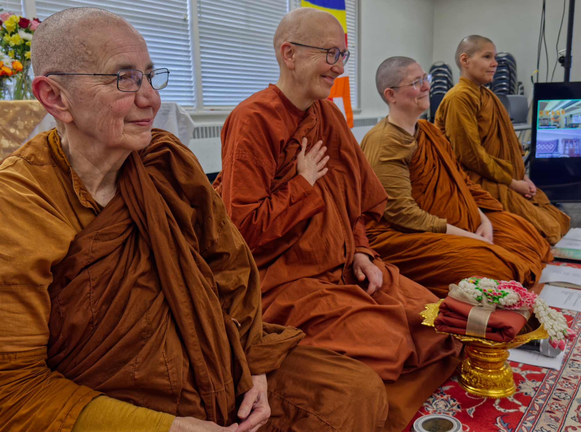 On Sunday, December 7, a beautiful gathering took place at the Port Townsend Community Center to support Parayana Vihara and the growing bhikkhuni sangha in the Pacific Northwest. Around 50 people attended Parayana Vihara’s second Almsgiving Ceremony, including many friends from the greater Seattle area and as far away as Portland, OR. Ayya Suvijjana and Ayya Niyyanika of Passaddhi Vihara in Olympia also participated in the event.