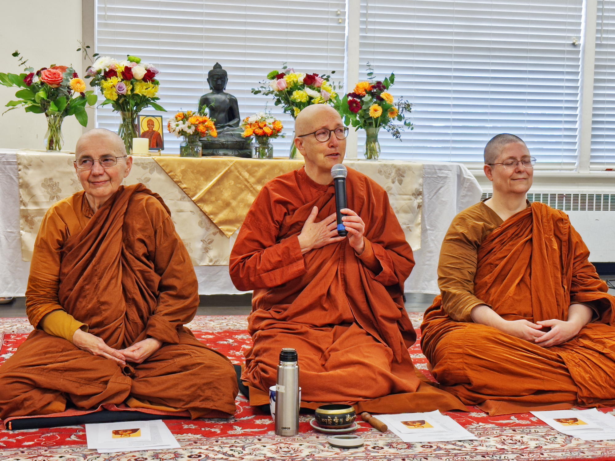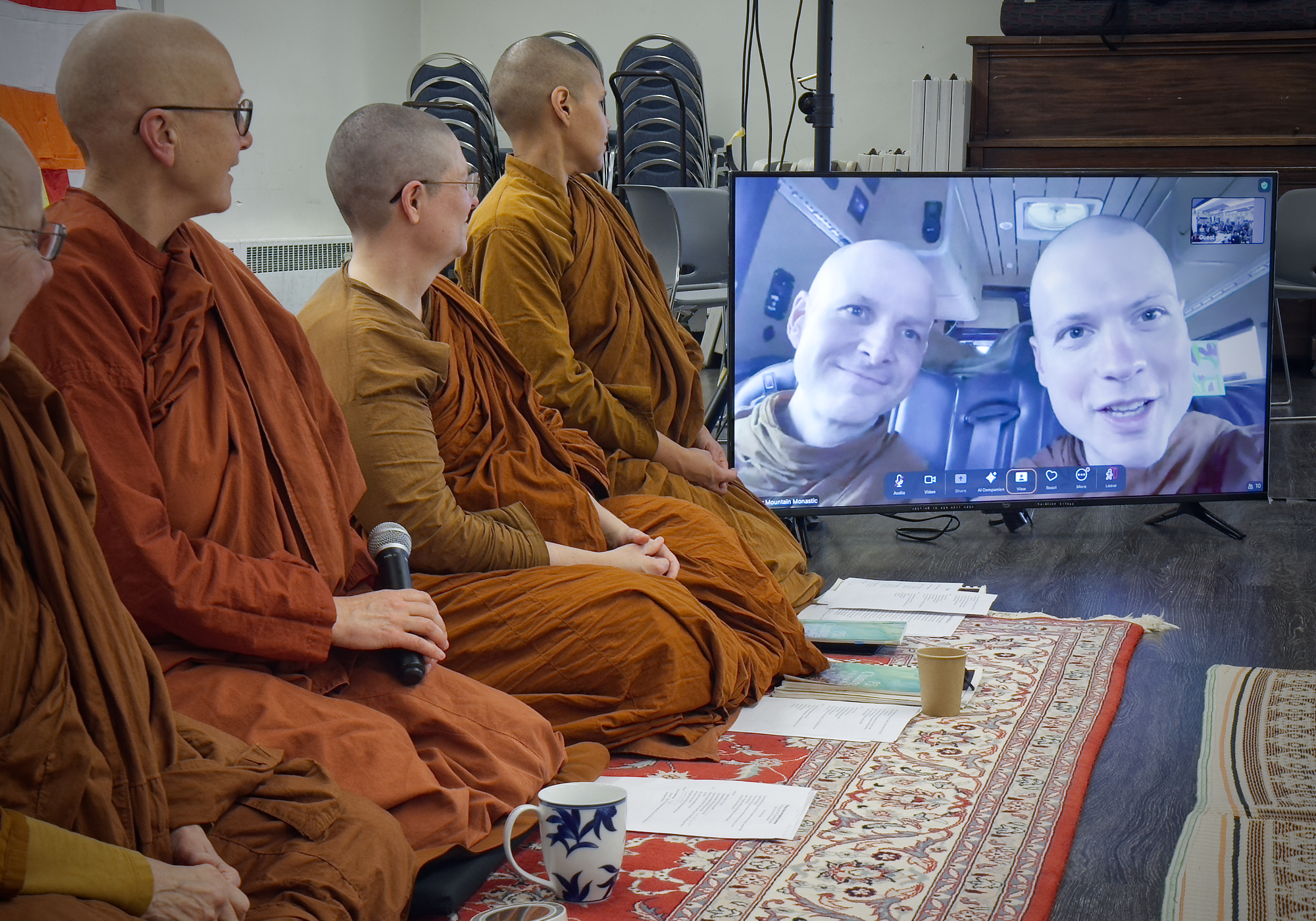 Ajahns Nisabho and Kovilo from the Clear Mountain Monastery project popped in via Zoom while traveling on the road to express support and encouragement for the bhikkhuni sangha. Ajahn Nisabho said, “One of the most affirming elements of coming to the Northwest… has been seeing these bhikkhuni communities and our bhikkhuni siblings come nearby, and we feel just so heartened and encouraged and held in this kind of growing family and constellation of goodness.”